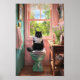 Gato Negro em um assento de Banheiro Lendo Papéis Poster