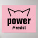 Orelhas fofinhas em um fundo cor-de-rosa com as palavras "Poder" e "#resistir." Quando você quer ser um pouco mais sutil e não usar a palavra "buceta", mas você quer fazer o ponto passar. A resistência continua, e é liderada por mulheres. Vimos que a resistência funciona, então continue o bom trabalho. Não importa o que certos pequenos e antidemocratas digam, protestar é patriótico.