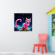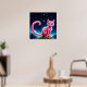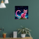 Poster Gato rosa fantástico na floresta mágica estelar no