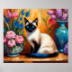Poster Gato siamês e Buquês em Vases