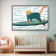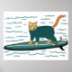 Poster Gato Tabby Surfando Diversão Quarto Infantil Praia