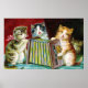 Vintage image de quatro gatos com um tocando uma squeezebox e dois cantando junto.