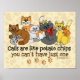 Gatos são como batatas fritas, você não pode ter apenas uma. Gato engraçado dizendo com 10 gatos coloridos diferentes. Com pata de gato impressa em fundo bege/castanho. Excelente para amantes de gatos. Chamam-te a dama maluca de gatos?