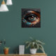 Um retrato em detalhe capturando o belo olho de uma mulher em um estilo único de abstrato. Com um toque de matizes de cobre e turquesa em uma canvas de carvão, elementos gravados criam uma representação fotorealista que é impressionante e artisticamente distinta.