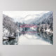 Poster Gelo e neve | Ponte vermelha no inverno, Japão
