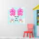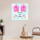 Chá de fraldas e/ou decoração de berçários de gêmeas, com filhotes gêmeos e balões cor-de-rosa.