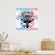 Make your gender reveal party super fun with this race car themed design! This design features the phrase "Burnouts or Bows" along with two car tires, one with pink and one with a blue rim. Each tire is surrounded by pink and blue smoke. Underneath is a black and white checkered flag design over two baby footprints, one pink and one blue. Continuing the gender reveal theme, a half blue and half pink bow is shown at the bottom on the checkered design. Adding to the race day motif, two checkered flags, one pink and one blue, decorate the sides while the top and bottom are bordered with a pink and blue checkerboard pattern. The back side of the invitation has all the details of your event with the same pink and blue checkerboard border and checkered flags. Get matching party supplies like cups, plates and napkins etc in my shop, RoomShiners! Pam