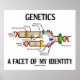 Mostre seu lado da psique molecular com esta poster que apresenta todas as partes chave da replicação de DNA junto com o ditado "Genética Uma Faceta de Minha Identidade".