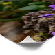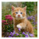 Um gatinho encantador brincando com flores em um jardim. Um gatinho encantador com olhos azuis maravilhosos, foto tirada por Katho Menden. Esta poster é uma ideia de presente para amantes de gatos e animais de estimação.