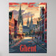 Experimente a transformação mágica de Gand enquanto o sol se põe com nossa ilustração de viagem. Essa peça encantadora captura o horizonte histórico da cidade brilhando nas calorosas tonalidades. Imagine-se ao longo dos canais pitorescos, onde a arquitetura antiga reflete a luz do ouro, e a cidade ganha vida com uma beleza tranquila e eterno. Embarque numa viagem a Gand, onde toda noite se desenrola numa sinfonia de cores e horizontes históricos.