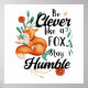 Aperte o seu espaço com um toque de sabedoria e beleza com esta poster adorável! Apresentando uma fox doce de aquarela aninhada entre flores bonito, combinada com as inspiradoras palavras "Seja inteligente como uma raposa, fique humilde", é um perfeito lembrete para ser afiada e gentil, bem ali na sua parede. Quer você esteja decorando seu escritório, quarto ou sala de estar, deixe esta poster ser sua na moda e peça de arte encorajadora! Pegue o seu e fique inteligente e humilde!