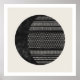 This minimalist art print features a large black circle partially filled with a hand-drawn tribal pattern, creating the illusion of a lunar eclipse. The geometric, tribal pattern is made up of lines, squares, and triangles. This print comes in 3 color variations, and is bold and modern enough to be featured in a loft apartment, or in a man's living room or office.
