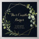 Este sinal de vela azul verde dourado geométrico é perfeito para um casamento simples. O design apresenta belas folhas verdes pintadas à mão em um fundo azul escuro, adornando uma moldura geométrica dourada.