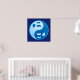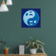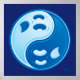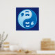 Símbolo Yin Yang feito de dois fantasmas assustadores em tons de azul contrastantes.