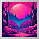 Explore um mundo caprichoso com nossa gigante arte lua rosa contra uma floresta escura e bela em um estilo de desenho animado (Esta Design Feita com IA). Faça a ordem hoje e encare a alegria de Comprar!