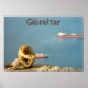 Macaco-barbaria no topo do Rochedo de Gibraltar, com a Baía de Gibraltar e a navegação em segundo plano