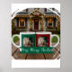Ginger cat, Photo Text Customize ,Meowy Christmas Poster , With Coffee Mug Set In Front of the House Christmas Decorated, Front And Back Photo And Text, Humor, Customizable, For Cat Lovers, Cat Owners. Generative content . Make yourself a keepsake mug set with your own pet photo and text