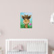 Esta girafa adorável, com um sorriso pateta e uma flor em sua boca, está tocando a cabeça através das árvores para dizer olá. Seu rosto feliz faz a decoração perfeita para uma parede de bebê ou quarto de criança ou para iluminar sua parede de escritório. Este impressão também pode ser colado e enquadrado para sua decoração de parede favorita.
