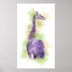 Uma renderização brilhante e colorida de uma girafa em púrpuras e amarelos.