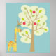 Girafa e coelho fofo animais com árvore de maçã arte para parede de quarto infantil ou berçário