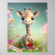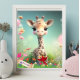 Poster Girafa Fofa no Jardim Arte Personalizada para Berç