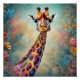 Uma Girafa com aquarela detalhada com olhos expressivos é retratada contra um fundo macio e turvo. As cores naturais melhoram a aparência semelhante à vida.
