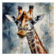 Uma Girafa com aquarela detalhada com olhos expressivos é retratada contra um fundo macio e turvo. As cores naturais melhoram a aparência semelhante à vida.