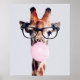 POSTER GIRAFA USANDO ÓCULOS SOPRANDO UM CHICLETE ROSA