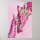Uma mãe amorosa e girafa bebê em tons de rosa.