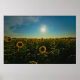 Colocando sol sobre um campo de girassóis. Tirada numa noite quente de julho no centro do Illinois.