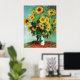 Nos dias em que Claude Monet não podia sair e pintar, ele ficou dentro e pintou naturezas-mortas. Ele sempre acolheu com entusiasmo o exterior e a pintura de "plein-air" para estudar a mudança de luz ao ar livre. Mas, ao pintar seus girassóis, deve ter trazido o dentro exterior à medida que eles se enchem com a energia do vento e as cores das luzes ao ar livre. Não se sabe se Van Gogh alguma vez viu a pintura de Monet "Girassóis". Em uma semana Van Gogh havia pintado quatro pinturas de girassol com extremo entusiasmo. Van Gogh gostava de estudar a harmonia da cor das flores junto com as cores de fundo. O amarelo pode ter sido a cor favorita de Van Gogh porque o ajudou a sentir-se mais alegre e menos deprimido. Gaugin, um amigo de Van Gogh, considerou os girassóis de Van Gogh MELHOR do que os girassóis de Claude Monet! Talvez possamos ser o juiz disso!