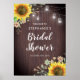 Este poster de chá de panela de aquarela apresenta girassol de aquarela, luzes de cordas e madeira. Personalize-o com o nome da noiva e a data do chá de panela. Este poster é parte de uma coleção que apresenta uma gama de cheios e produtos de casamento. Visite nossa loja para ver a coleção de cheios.
