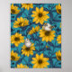 Poster Girassóis selvagens e aves douradas/ amarelas