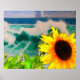 Girassol na praia. Uma pintura oceânica original do estúdio RivyArts, que foi aperfeiçoada e um girassol adicionado.
