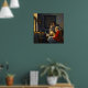 Bring quiet drama and luminous Dutch realism to your space with “Girl Interrupted at Her Music” by Johannes Vermeer. In a softly lit interior, a young woman pauses at the keyboard and turns toward the viewer, as if caught mid-moment. Vermeer’s signature magic is in the details: warm window light, gentle shadows, and rich fabric textures that feel almost tangible. The calm setting, with chairs, table, and a simple still life, frames the figure with intimate, everyday elegance.