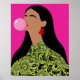 Poster Girl with Pink Bubblegum Illustration Funky Art