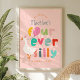 This cute and whimsical girls 4th birthday welcome poster design features a silly goose with a pink party hat and matching balloon, and can be personalized with a your girls name. The perfect farm design for your little one's fourth birthday!