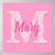 Nome das raparigas com a letra M inicial. Impressão de padrão de xadrez rosa. Poster decorativo para o quarto das meninas. O texto pode ser editado para tornar este poster exclusivo.
