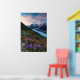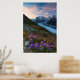 Esta foto mostra flores silvestres em rochas com glaciar Monte Rosa em fundo, Zermatt, cantão de Valais, Suiça.
