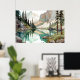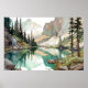Impressão de Pintura em Aquarela do Parque Nacional Glacier, Lago Bullhead via Swiftcurrent Pass Trail Poster.