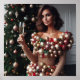 Uma morena deslumbrante exude alegria de férias em um vestido único e atraente adormecido com tecido de ouro e uma cascata de Enfeites de natal coloridos. Segurando uma flauta de champanhe com uma mão delicada, ela se mantém confiante diante de uma árvore de Natal iluminada com brilho, seu olhar cativante encontrando o olho do observador.