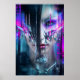Poster Glitch Cyberpunk Face Neon Distortion Portrait