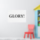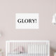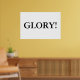 O poster é horizontal e tem a palavra "GLORY!" no meio, a preto e branco.