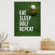 Adicione algum humor e personalidade ao seu espaço de golfe com este Poster de Golfe Engraçado que apresenta o slogan icônico "Repetição de Golfe no Sono". Perfeito para qualquer golfista que vive por este lema, esta poster trará um sorriso a qualquer um que entre na sala. Quer você esteja decorando sua caverna masculina, escritório, ou uma sala pessoal de golfe, esta peça de arte de parede certamente atingirá um acorde com os entusiastas de golfe. Esta poster capta o espírito do golfe de uma forma alegre e divertida. É um lembrete excelente das coisas que realmente importam - comer, dormir e, claro, jogar golfe! Quer você esteja dando isso a um colega de golfe ou adicionando isso ao seu próprio espaço, esta poster é uma maneira fácil de infundir um humor de golfe em qualquer sala.