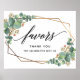 This is a beautiful wedding sign product for favors featuring script text and eucalyptus gold frame