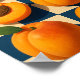Add a little sunshine to your space with this golden apricot checkerboard art print, showcasing six perfectly ripe apricots arranged in a bold blue-and-white grid. With a soft yet vibrant color palette, this design blends retro diner energy with a cozy, cottagecore twist.