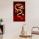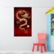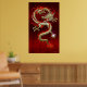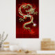 Poster Golden Chinese Dragon Fucanglong on Red Silk