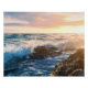 Pôster Golden Hour Ocean Waves Crashing on Rocks Sunset