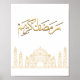 This striking wall print features a golden silhouette of a mosque with domes and minarets crowned by crescent moons, symbolizing the sacred spirit of Ramadan. Above the mosque, the Arabic phrase “رمضان كريم” (“Ramadan Kareem”) is elegantly written in gold calligraphy, conveying blessings and generosity. The symmetrical design and radiant tones make this piece ideal for prayer spaces, festive home decor, or heartfelt seasonal gifts. It’s a celebration of faith, beauty, and tradition during the holy month.