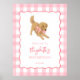Welcome your guests in style with this adorable pink gingham golden retriever first birthday poster! Featuring a sweet golden retriever puppy with a pink gingham bow and a classic checkered background, this personalized birthday sign adds a warm and playful touch to your celebration.